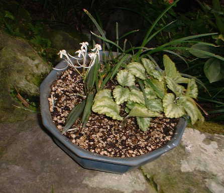 (追記)白いのは「フウラン(風蘭)」でした。ホントはミズゴケで植えた方が良いらしい。