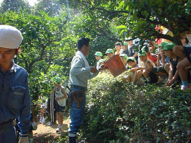 伊東市立旭小学校の茶畑で恒例の「授業」をした。