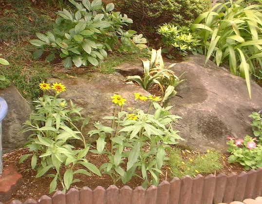 サカタの種のルドベキアと少々元気のないダールベルクデージーとペチュニア。