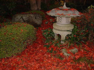 すっかり庭の主役となったモミジの赤が、あたりを染めていた。