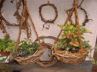 ツルで編んだバスケットにコリウスやエンジェルレースを入れて。