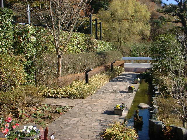 ↓作業前。道路から玄関までのアプローチに沿って流れを造ってあります。