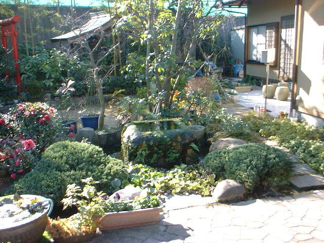 井筒から湧き出る水の流れが、生命を感じさせる素敵なお庭です。